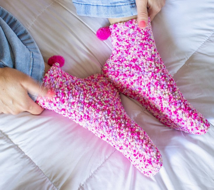 Meet the most adorable gift ever! These are the softest socks - topped with a pom pom! Perfect extra little something to add to a Valentine's Day or Mother's Day gift, or to gift on their own.